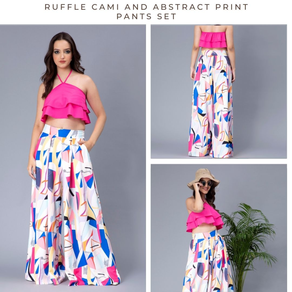 Abstract print two-piece sets for women are a must-have addition to your vacation wardrobe. These sets bring together the perfect combination of style and comfort, making them ideal for a variety of vacation activities. The abstract prints, ranging from tropical motifs to bold geometric patterns, add a touch of vibrancy and playfulness to your look, perfectly capturing the essence of a relaxing getaway.. Pair them with sandals, a sunhat, and some statement accessories, and you’ll be ready to embrace your vacation with confidence and fashion-forward flair.