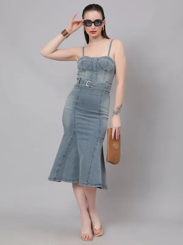 For a touch of elegance, the denim midi dress stands out with its longer length and sophisticated cut. This style can range from button-front A-line dresses to wrap dresses that offer a more tailored fit. A midi denim dress is versatile enough for both office settings and weekend getaways, depending on how you accessorize. Belt it to accentuate your waist and pair with mules or block heels for a polished look that transitions seamlessly from day to night.