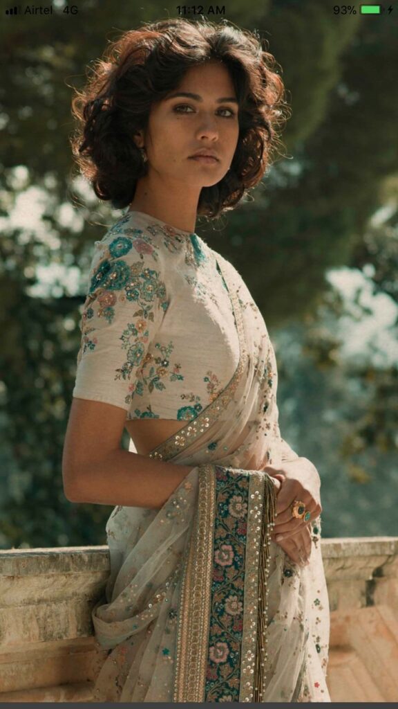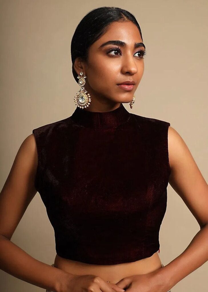 A full sleeves blouse with a high neck is a nod to vintage glamour. This design works exceptionally well with rich fabrics like brocade or silk and can be enhanced with a statement back design. It’s an ideal choice for those seeking a blend of modesty, style, and sophistication.