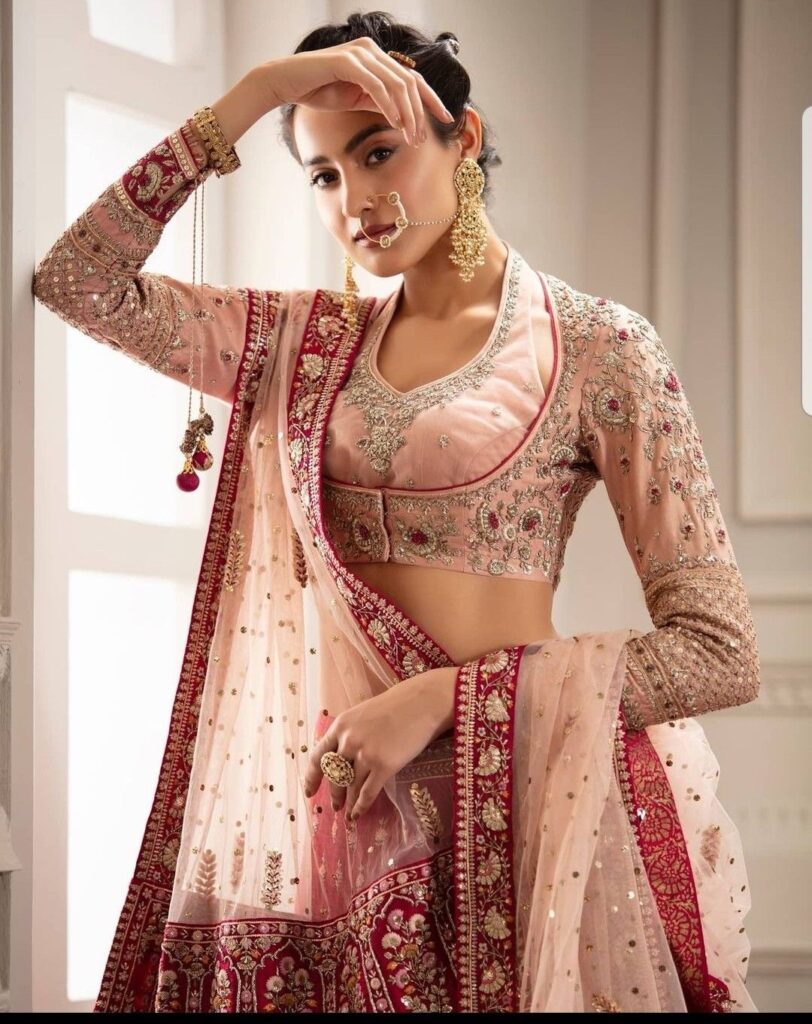 Sheer full sleeves offer a blend of sophistication and allure, perfect for the modern woman. Embellished with delicate embroidery or lace, these blouses pair beautifully with both silk sarees and lightweight lehengas. The sheer fabric adds a touch of sensuality without compromising on elegance, making it a must-try for this wedding season.