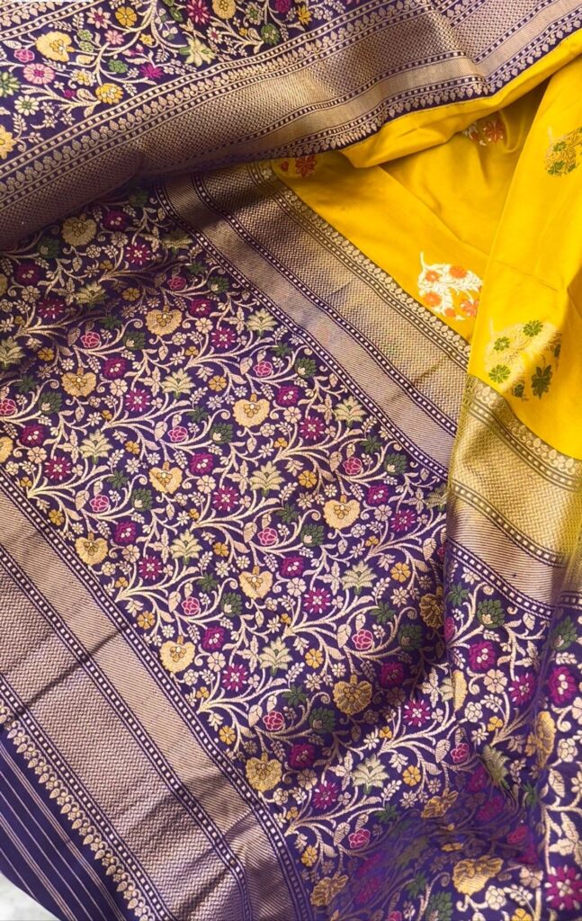 Banarasi saris are renowned for their vibrant colors, achieved through a labor-intensive dyeing process. The colors of an authentic Banarasi sari are vivid and rich, with a depth that is not usually present in imitations. Additionally, the sari should not lose its color after dry cleaning, a testament to the quality of dye used.
