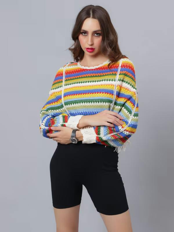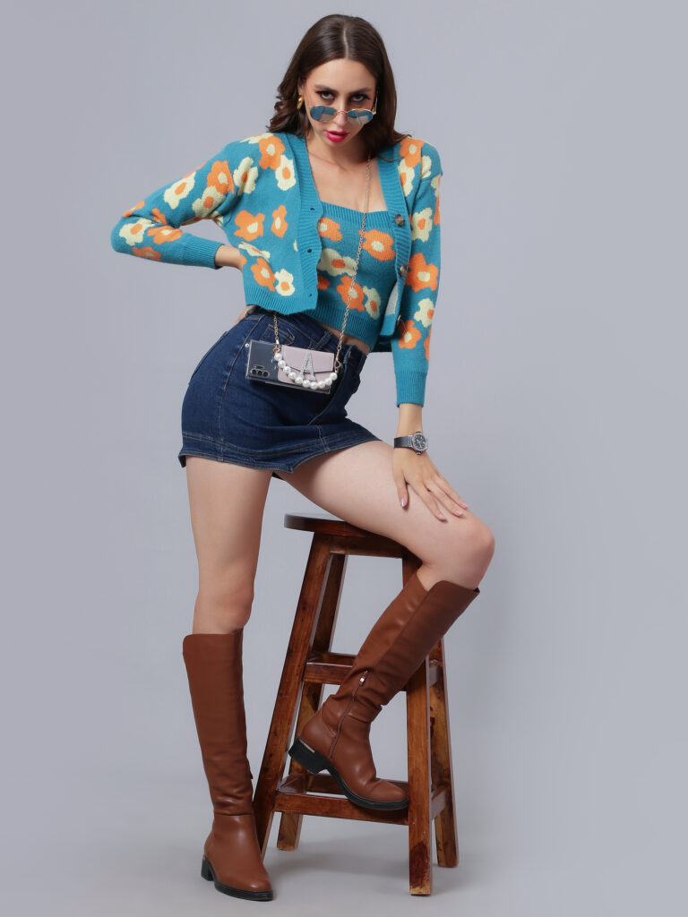 Mixing textures along with patterns adds depth and interest to your outfit. A smooth, silky leopard print blouse contrasts beautifully with a chunky, knitted striped cardigan. Texture adds an extra layer of complexity to your ensemble, making it more visually appealing.