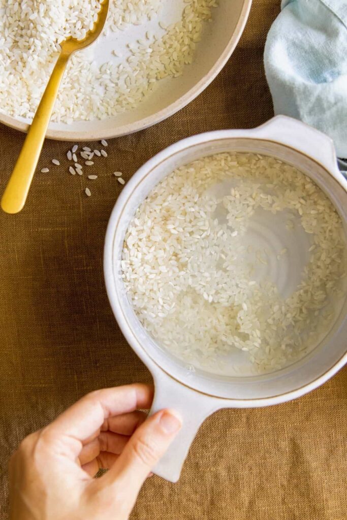 Strain: After soaking, strain the rice, collecting the water in a clean bowl. Your rice water is now ready to use.